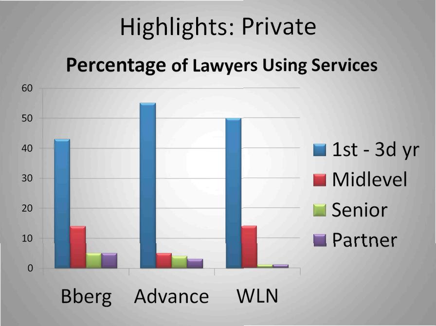 - Younger lawyers ( 1st – 3rd year associates) are embracing the advanced platforms, regardless of whether they were exposed to them in law school.
