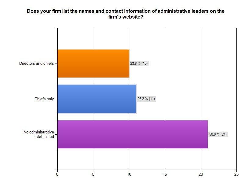 Contact Information Only about 1/3 of the respondents indicated that their firm provided basic contact information for their Directors or Chiefs.