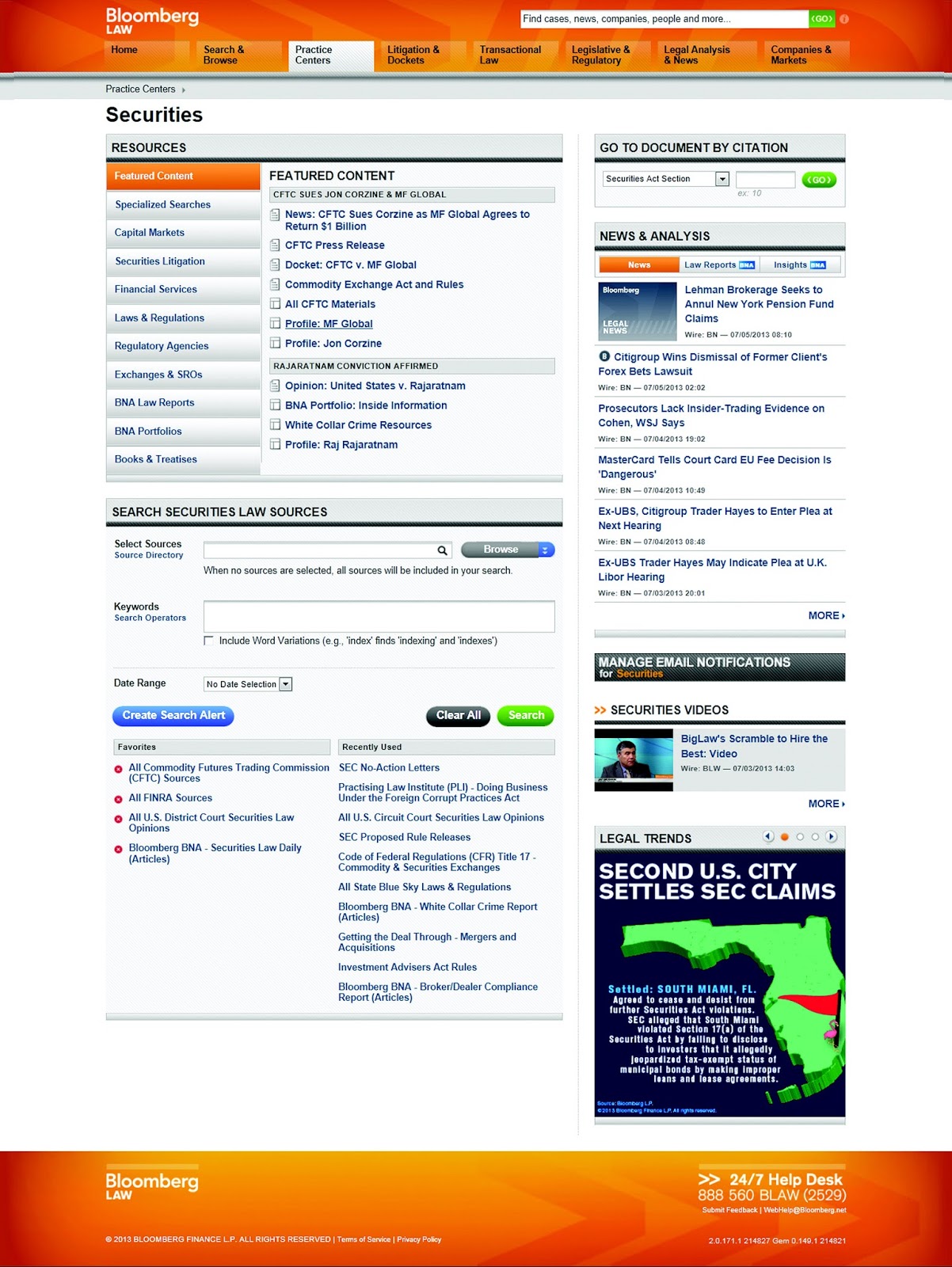 | Bloomberg Law Securities Practice Center |