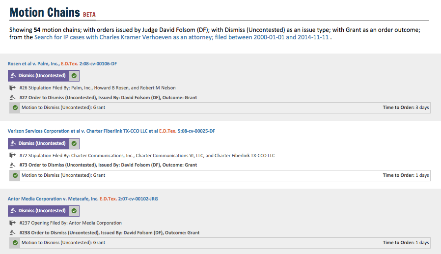 Track Motion Chains. Compare motion success by judge, party, or motion type, Examine motion chains and